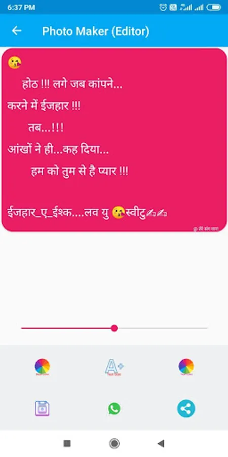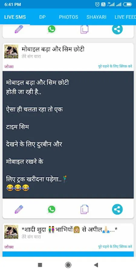 Here you can see daily updated latest Hindi font Shayari, new status and current day to day life short & full Hindi Jokes. In this app you can also see or download latest full HD photos, images of love, romance, inspirational and breakup etc.