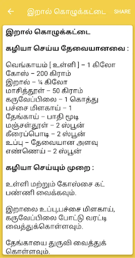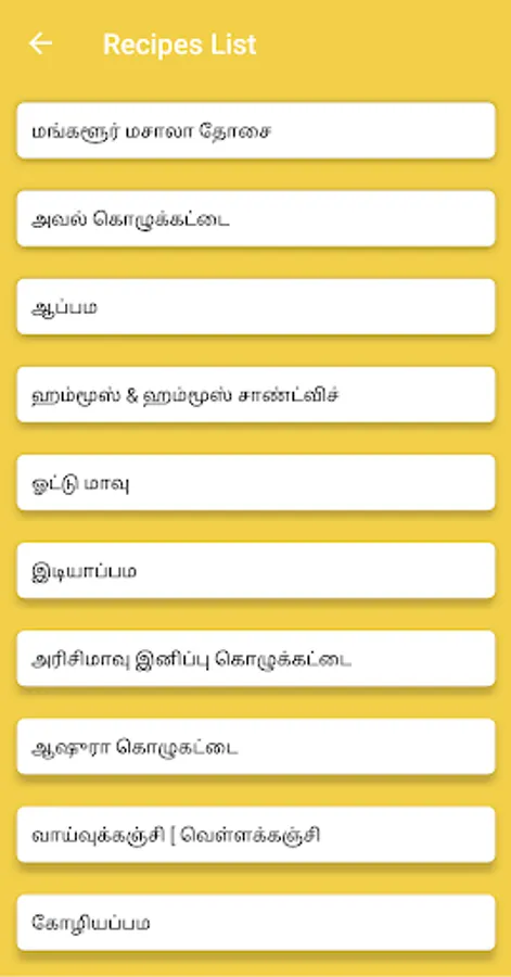 Popular dishes in the Tamil app: