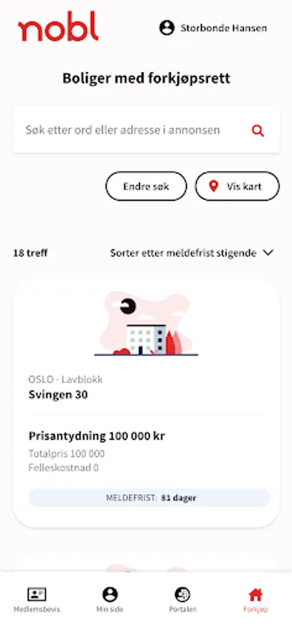 The app for customers of Nobl gives customers quick access to information about housing, membership benefits and the Portal for board members.