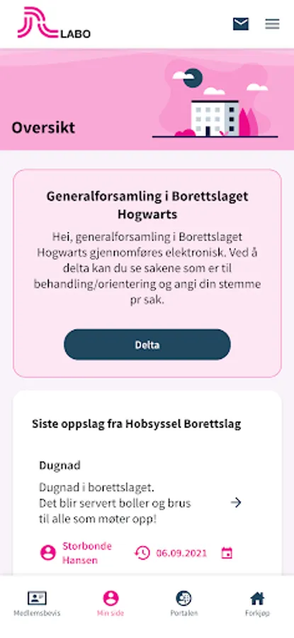 The app for customers of Labo gives customers quick access to information about housing, membership benefits and the Portal for board members.