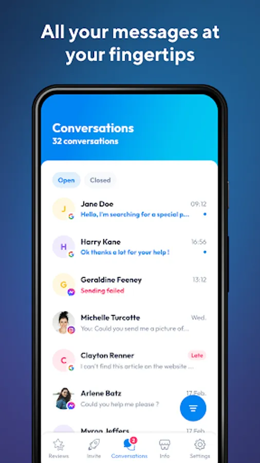 Chat with your customers on the most popular messaging platforms (Google, Messenger and Instagram)