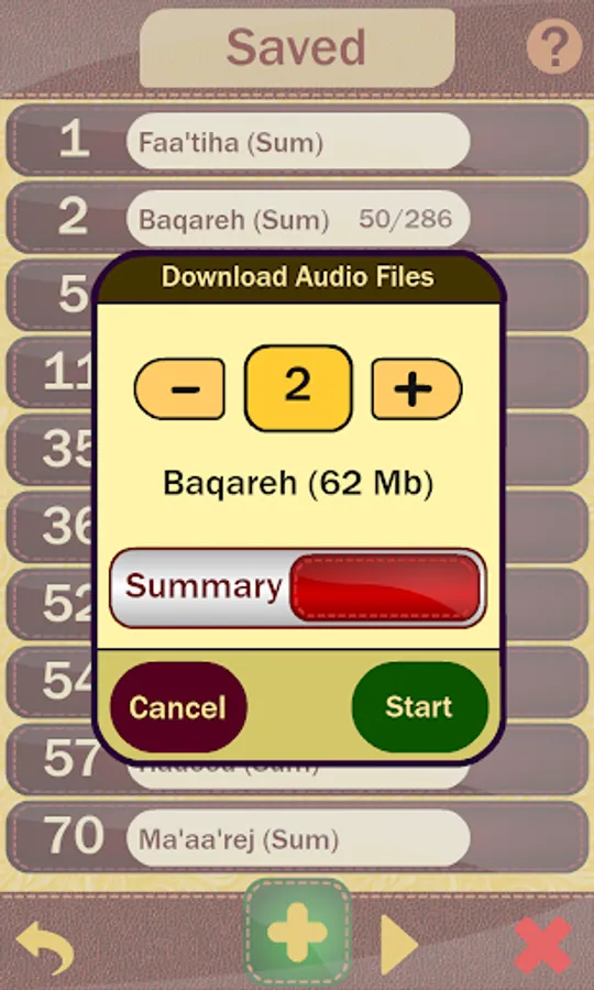 امکان ذخیره سوره به سوره صوت جهت استماع آفلاین