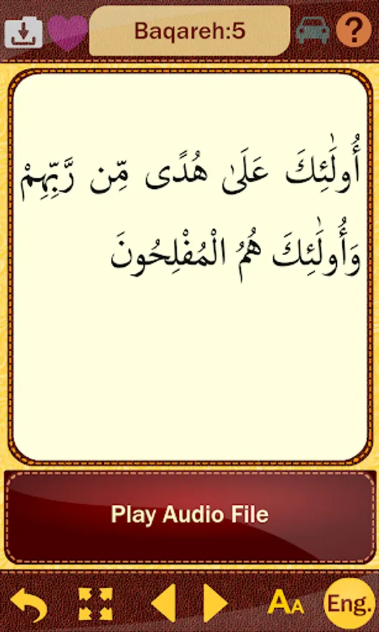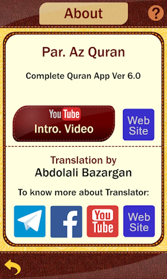 This Application contains the full Arabic text of Quran with an easy to read Font customized to five different sizes, as well as individual Audio Interpretation of all 6236 verses both in complete and summary (excerpt) versions in Farsi.