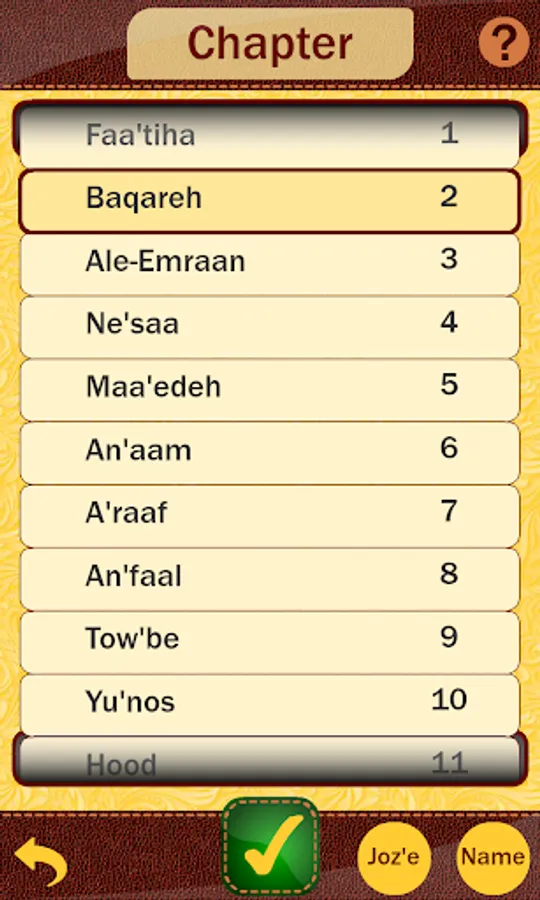 دسترسی آسان به سوره ها با منوی زیبا، شماره، جزء
