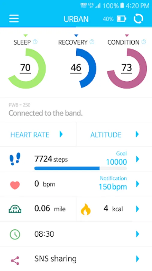 After installing app and sync to the Band, users can check their daily life and exercise through this application.