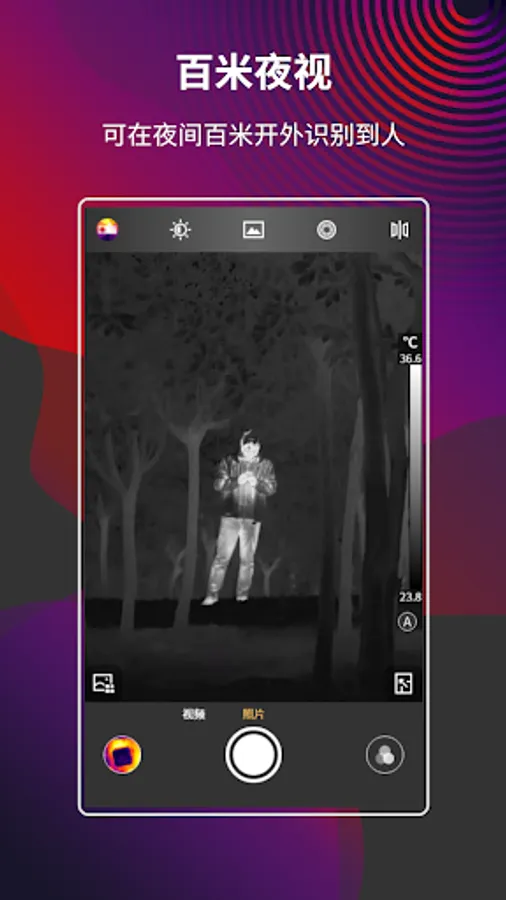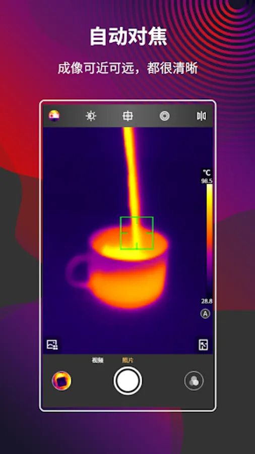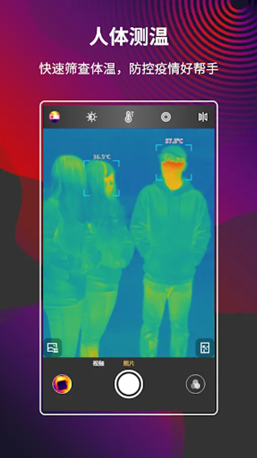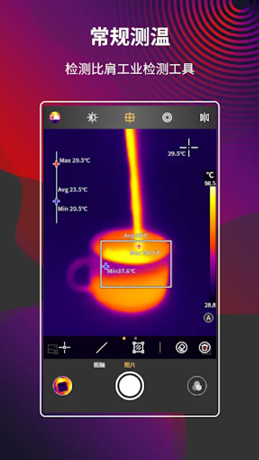 MobIR is an app suitable for mobile phone infrared modules. In the real-time video mode, it can measure temperature, switch color palettes (including custom color palettes), take pictures, videos, parameter settings, analysis objects, pictures and videos in real time. Browse, reanalyze photos, playback video, cloud function, and multi-language functions. You can use this app to record the temperature of every moment in your life!