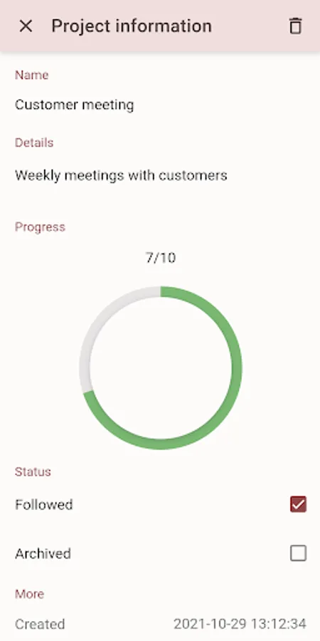 Manage your projects, watch their progress and keep continuous use wherever you are with the app's offline storage.