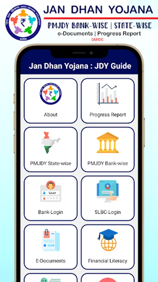 This a Guide app so you can get guidance regarding what is jan dhan yojana, purpose of jan dhan yojana, pmjdy shceme, pmjdy, jan dhan yojana - Progress Report, Financial Literacy, e-Documents, Quick Links, Media of pmjdy, pmjdy state wise, pmjdy bank wise, pmjan dhan yojana, pmjandhanyojana, The six pillars—providing bank accounts, credit, insurance, pension, financial literacy, and increasing the penetration of banking agents etc…