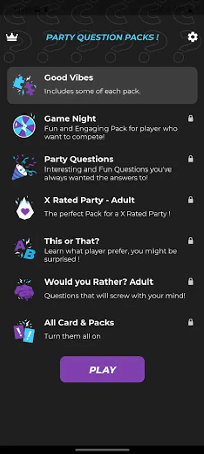 Party Questions is the ultimate party game that lets you play all of your favorite games and create your own rules! Create your own game rules based on the color of the card being blue or purple! Simple UI design that is Easy to use! Fun and Addicting for Teens and Adults!