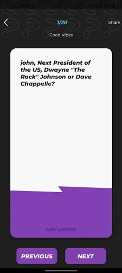 Play your favorite games/party questions: