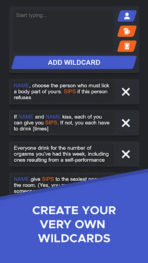 Extreme - Feeling a little daring? These cards are designed to get you up close and personal with your fellow players. It's all in good fun, but who knows, you might just make a new friend (or more). Just don't get too cocky, you never know who's watching.