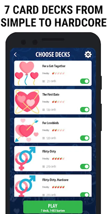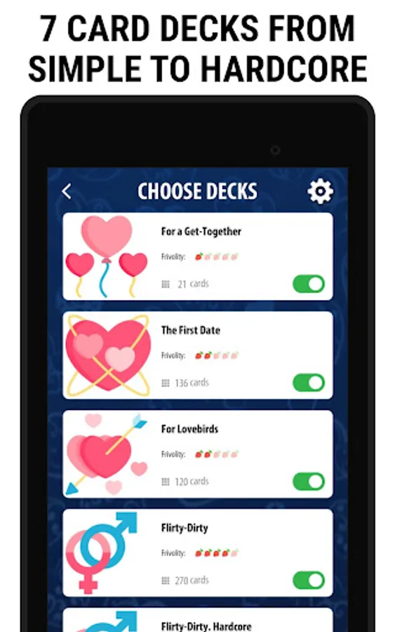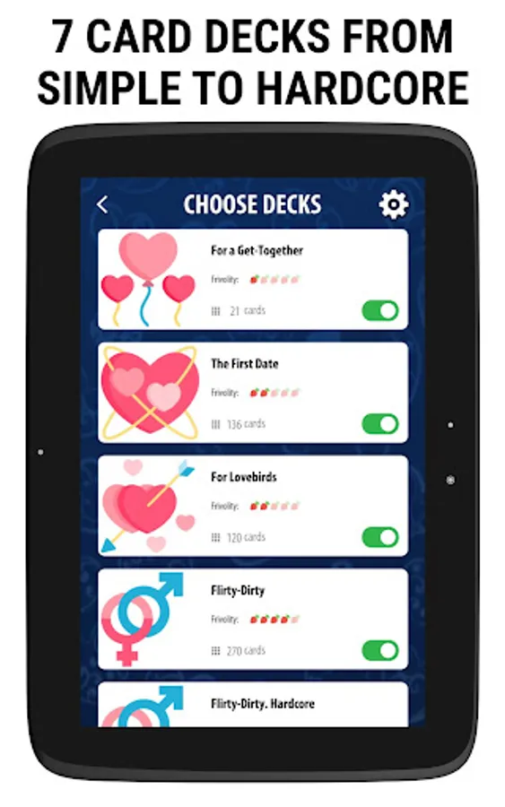 + 1500 game cards of various difficulty. From the most simple and innocent to really hardcore