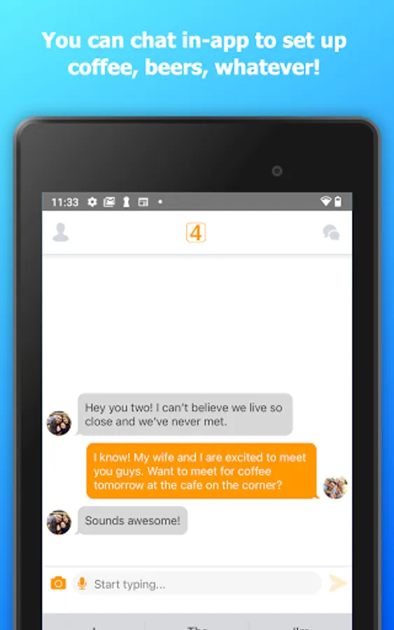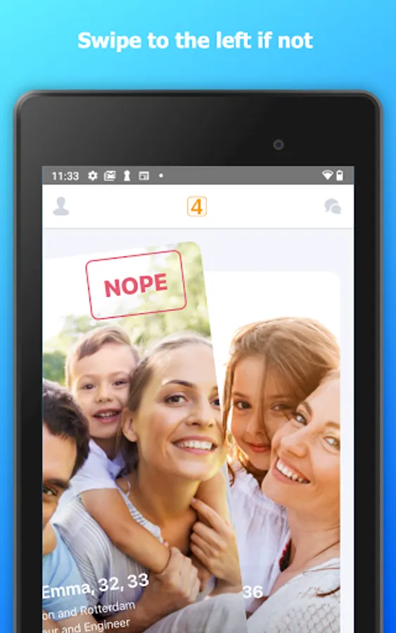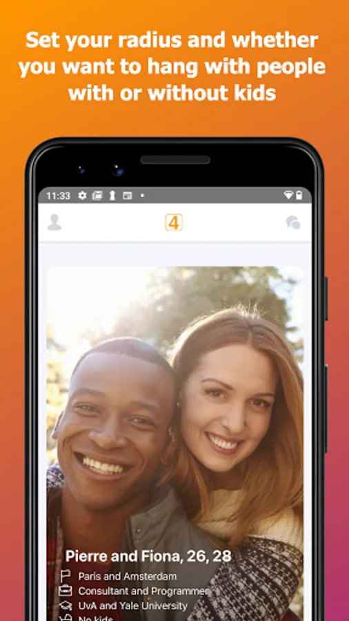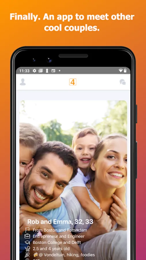 Party of 4 is for couples only. It's an app to find friends based on your location and the phase of life you're in (for example: if you have kids, no kids, etc.). It's an app for finding platonic friendship only (strictly enforced). Make a profile today and start swiping!