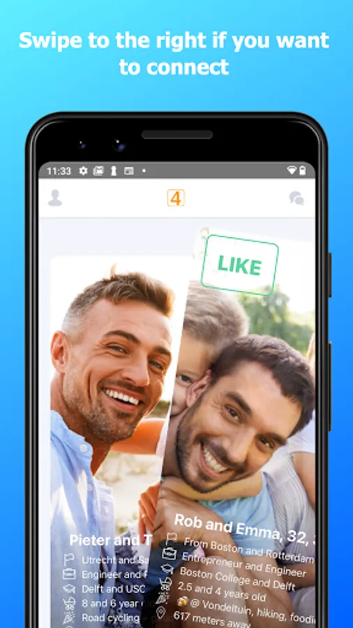 Simply set your filters and start swiping. Kids? No kids? Just moved to a new city? Find friends who are in the same phase of life as you.