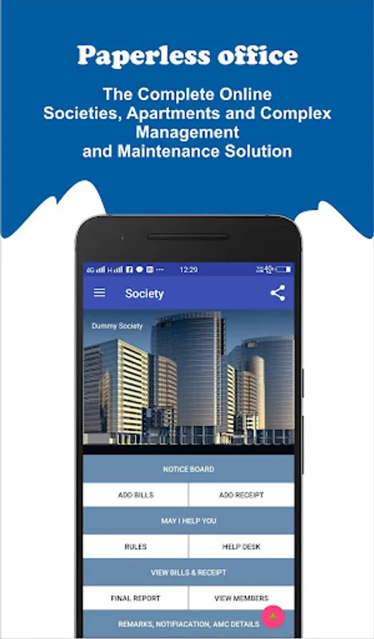 This mobile app allow Society Members to access of Bills & Receipts Records, with all facility management activities and provide completely digital solution that aims to improve the efficiency of operation & maintenance and reduces the costs as well as increases the satisfaction of the Society.