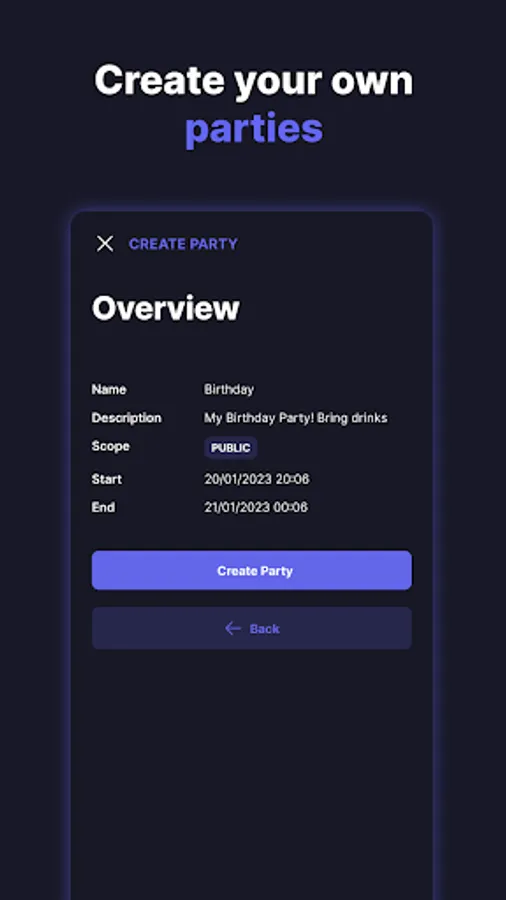 But Party With Me offers more than just event discovery. We want you to enjoy your nights to the fullest and connect with new friends. With our integrated Friends feature, you can connect with other party-goers and celebrate together. Find like-minded individuals who share your passion for nightlife and plan unforgettable outings to the city's best events.