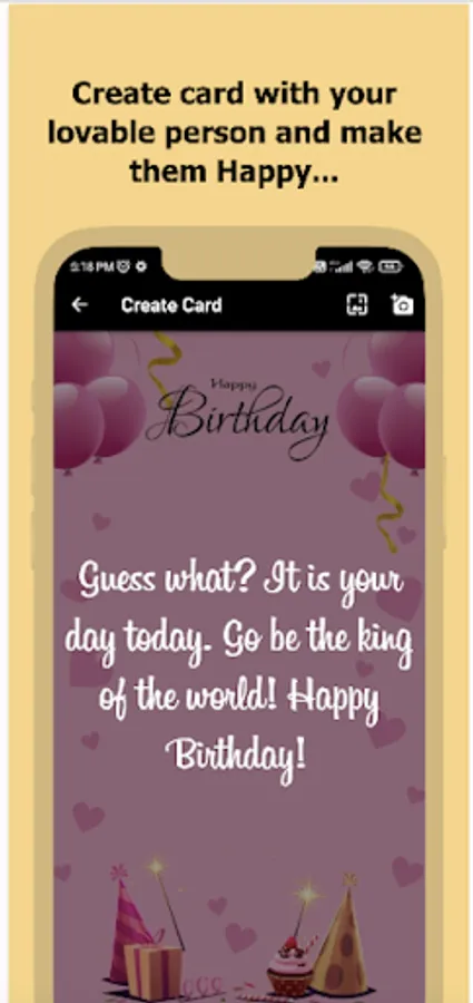 'Happy Birthday Cards Maker' app provides you make your custom cards and messages as your wish for Edit Cads, share Cards, copy Message and Download Cards and share to social media like, Whats app, Facebook, Instagram and other social media.