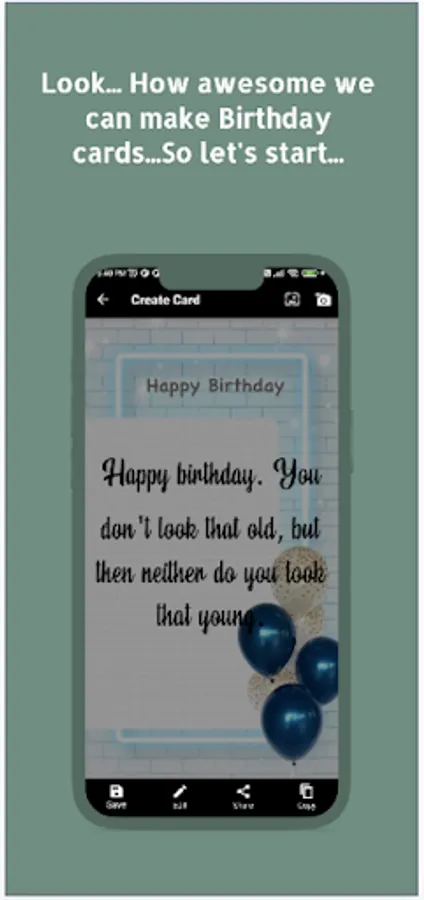 Use this Amazing Birthday Cards Creator app for make cards and you have to just Save, Copy or share with this lovely app and you can easily use it.