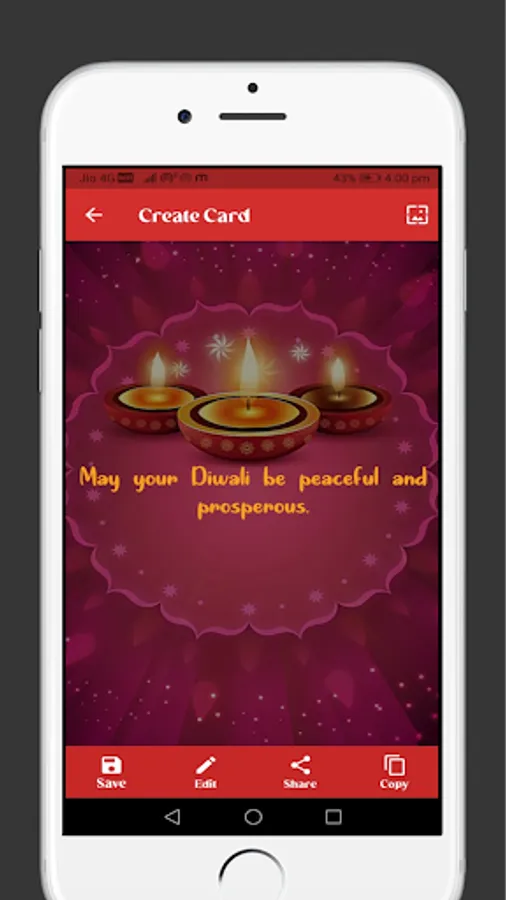 - Slide Diwali Cards, image, and Create Custom Cards in detail screen.