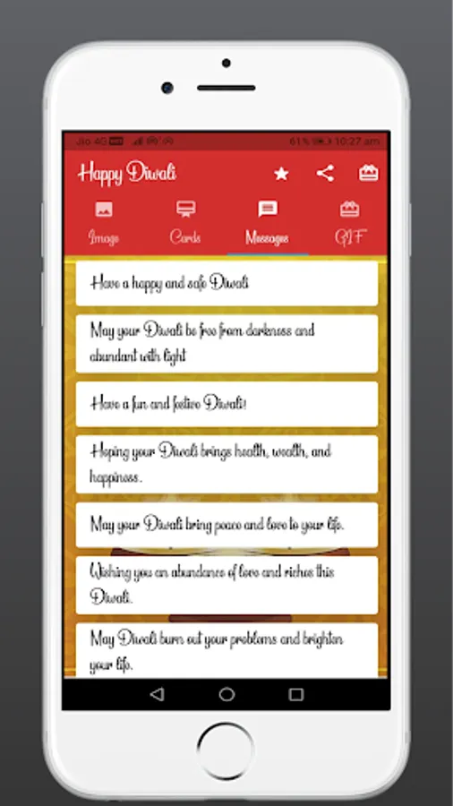 ‘Diwali Wishes' app provides you Diwali Images, Diwali Cards, Diwali Message, Diwali Quotes, and Diwali GIFs for share copy and Download Diwali Wishes on Whats app, Facebook, Instagram and other social media.