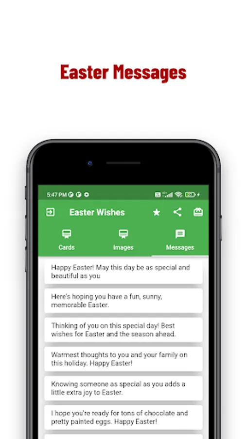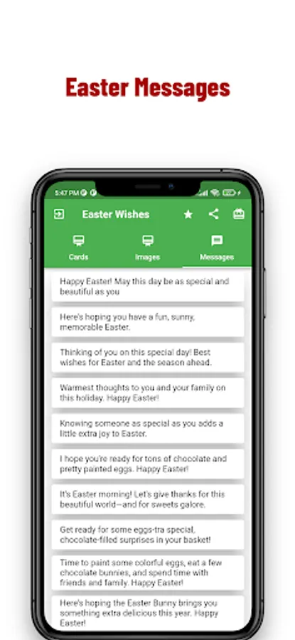 Here we are providing you Latest,Lovely and Amazing Easter Cards Greetings App with Nice and Attractive design. you can use this app online or offline.We are updating weekly new Happy Easter messages updated.