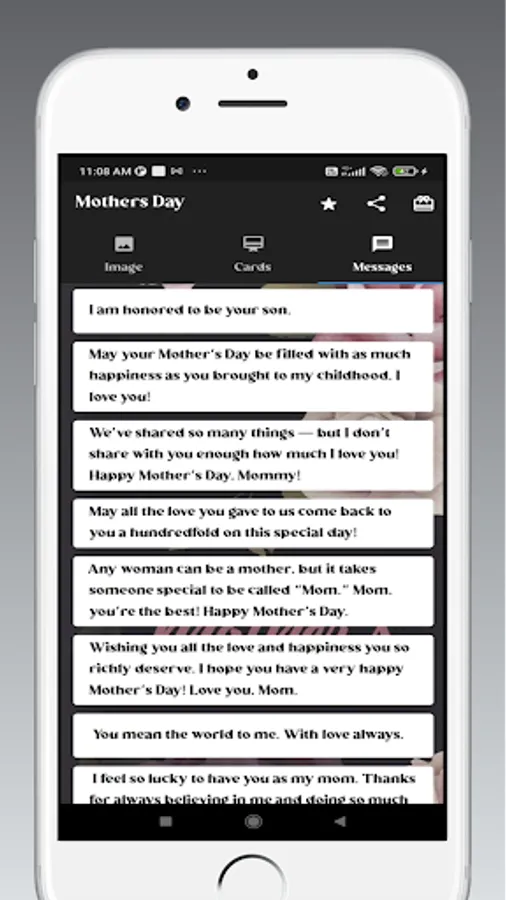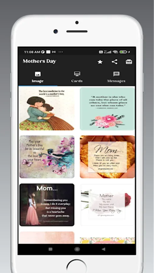 'Mothers Day Cards' app provides you Mothers Day Cards, Images, Mothers Day Cards, Mothers Day Message and Mothers Day Quotes for share copy and Download Mothers Day Cards on Whats app, Facebook, Instagram and other social media.