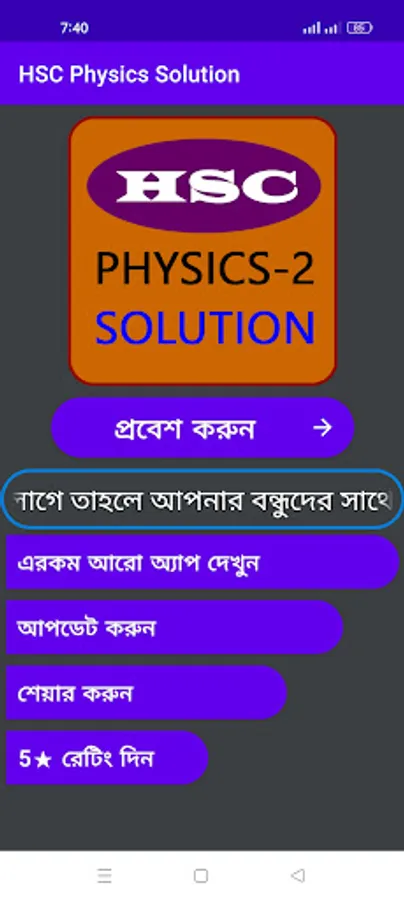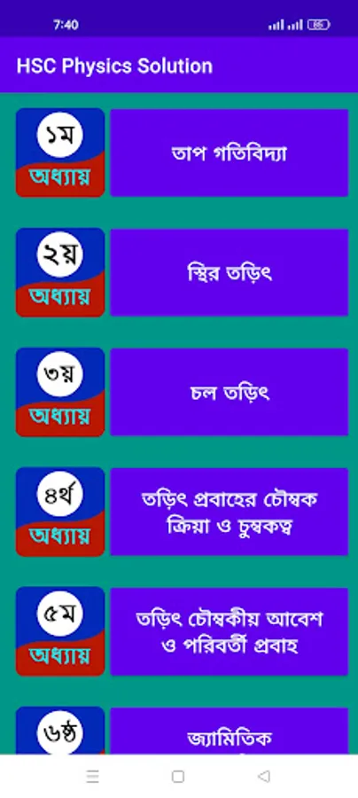 Mathematical of each chapter on topics such as thermal dynamics, static electricity, current, magnetic action and magnetism of electric current, electromagnetic induction and transient current, geometrical optics, physical optics, introduction to modern physics, atomic model and nuclear physics, semiconductor and electronics and astronomy etc. The problem is highlighted. This app is given to you for free so that you can take the education more easily. My only request to you as a developer is to share the app with your friends if you find it useful. It will make my pain worthwhile.