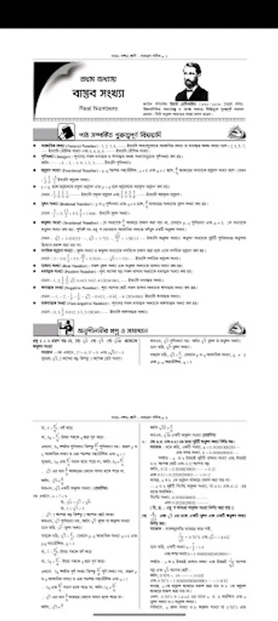 In this SSC Math Solution app, you can read about sets and functions, algebraic numbers - squares, indices, logarithms, equations with one variable, triangles, practical geometry, circles and trigonometry etc.