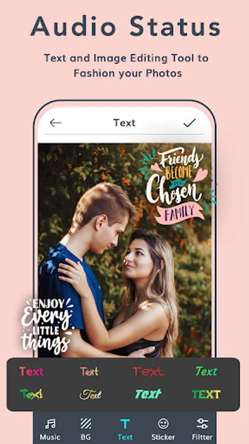Now you can share your audio photo status with the helps of a song or audio that you easily apply on your photo.