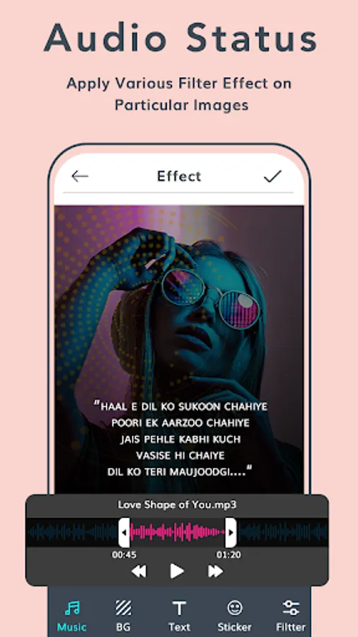 If you are status lover & want to share something new on social media platforms then "Audio Status Maker With Photo - Audio Story" application perfect for you.