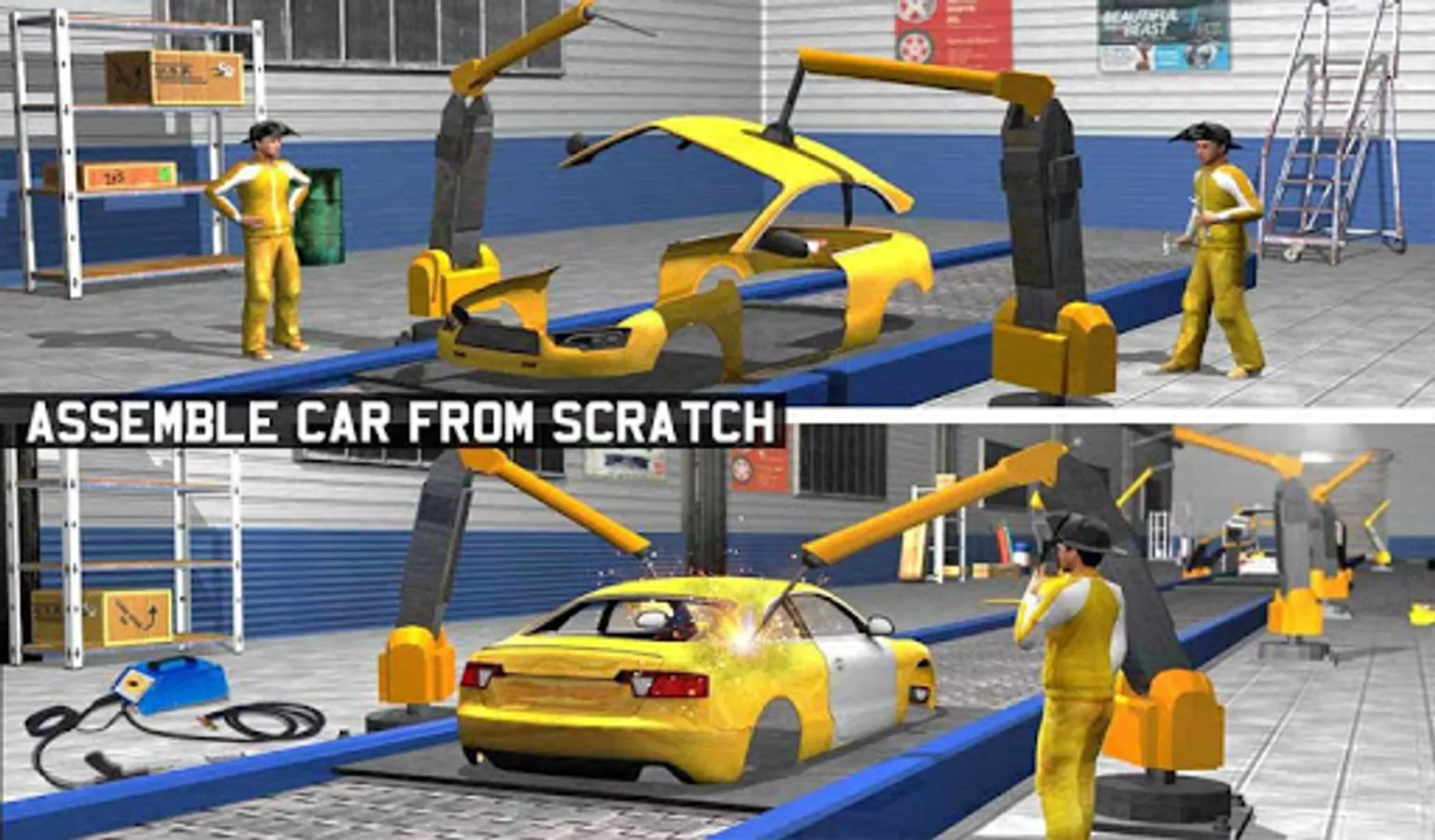 Roll up your sleeves! Run a car factory, work with hard labor and start building your own vehicle in a car builder simulator. Make custom designed muscle cars for customers in auto car building games. In this car maker factory game you’ll learn the entire process of car manufacturing from the start of the assembly line by; mechanically moving the parts to the assembly work until the final sports car game is manufactured.
