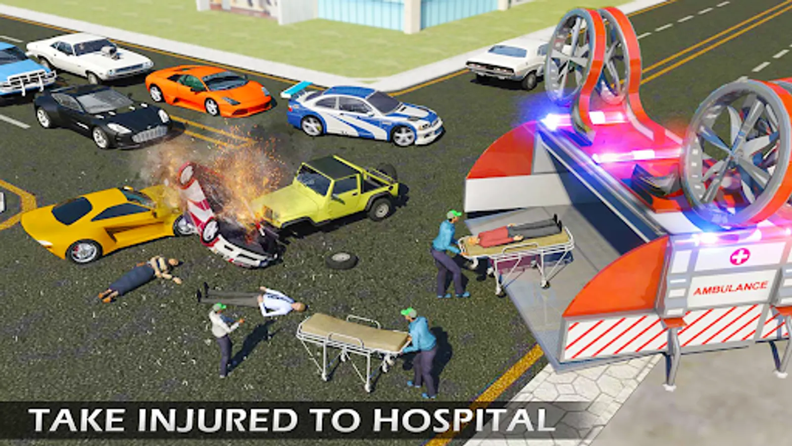 While driving big city ambulance in flying ambulance helicopter, take charge of a futuristic drone ambulance and give first aid to injured people on spot by police rescue. This ultra modern 911 rescue quadcopter is equipped with medical devices and equipment 911 ambulance games . Prove yourself a flying hero in police ambulance emergency games by completing challenging heli rescue mission of 911 rescue car. Transport the injured patients in your flying ambulance car to experience best copter car ambulance game to safe zone in flying ambulance like an army rescue helicopter. In case of fire emergency take charge of firefighter helicopter rescue - fire engine simulator to transport water and take out fire. Be an emergency driver for emergency games, take off from the hospital rooftop and fly around in massive city to help NY residents. Fly with your forest copter car helicopter rescue team to the place of accident.
