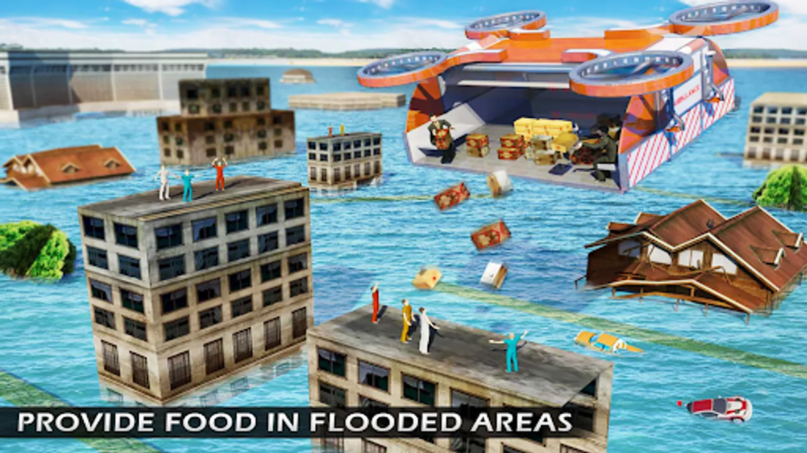 Experience the thrill and adventure of flying ambulance 3d, a rescue helicopter in Heli Ambulance Rescue Team. Become part of most skilled rescue squad and provide medevac service in natural disasters like hurricane harvey or irma in emergency ambulance simulator rescue games. Play flying ambulance car in copter car ambulance games.The suburban town has been hit by rainstorm your job is to evacuate the area & rescue US citizens to safety in police rescue simulation emergency games. Fly copter car 911 helicopter ambulance towards flooded area driving in big city ambulance and drop food boxes to survivors. Show extreme heli flying ambulance skills as time is short and lives are in danger. Use fire engine simulator in 911 ambulance game same like in rescue games and heli ambulance simulator , drone air ambulance and transport them to safe zone in flying ambulance games.
