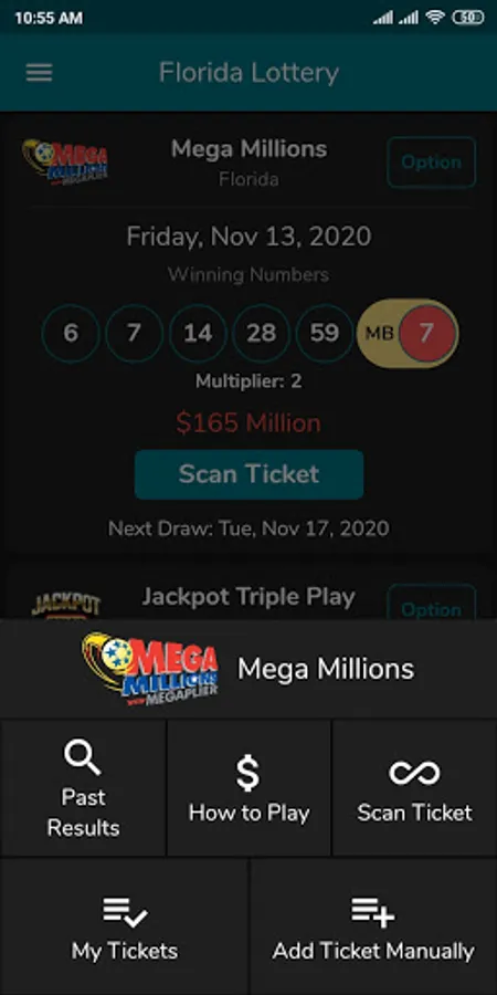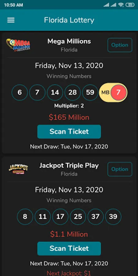 Latest jackpot winning numbers are loaded with history (Past results) for each game, prize levels/payouts (Ways to Win) and you can also scan physical ticket information for games in Florida. The scanning and detection of lottery information albeit works correctly, user has full independence in reviewing and modifying the numbers before checking results against or storing away in phone storage.