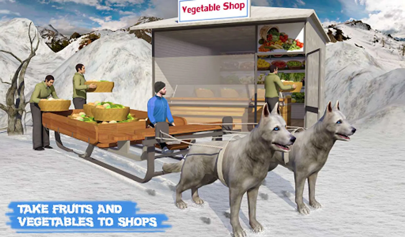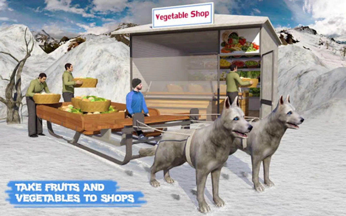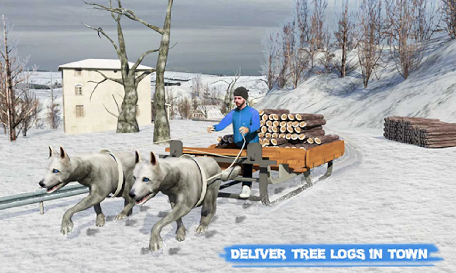 Alaskan dog sledding simulator is a famous winter sports which requires trained husky dogs to run on icy roads. As winter is coming, visit small huts and fruit shops along with canine companions to transport cargo & wooden boxes in extreme cold weather. Pull on siberian huskies and deliver cargo boxes in latest stray dog sledding winter sports.