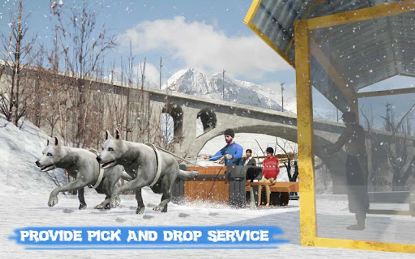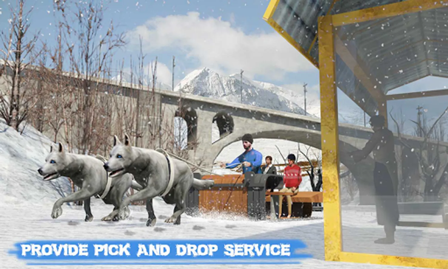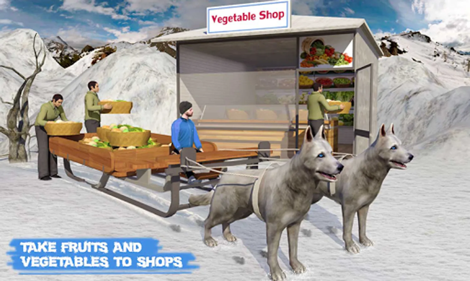 Alaskan dog sledding simulator is a famous winter sports which requires trained husky dogs to run on icy roads. As winter is coming, visit small huts and fruit shops along with canine companions to transport cargo & wooden boxes in extreme cold weather. Pull on siberian huskies and deliver cargo boxes in latest stray dog sledding winter sports.