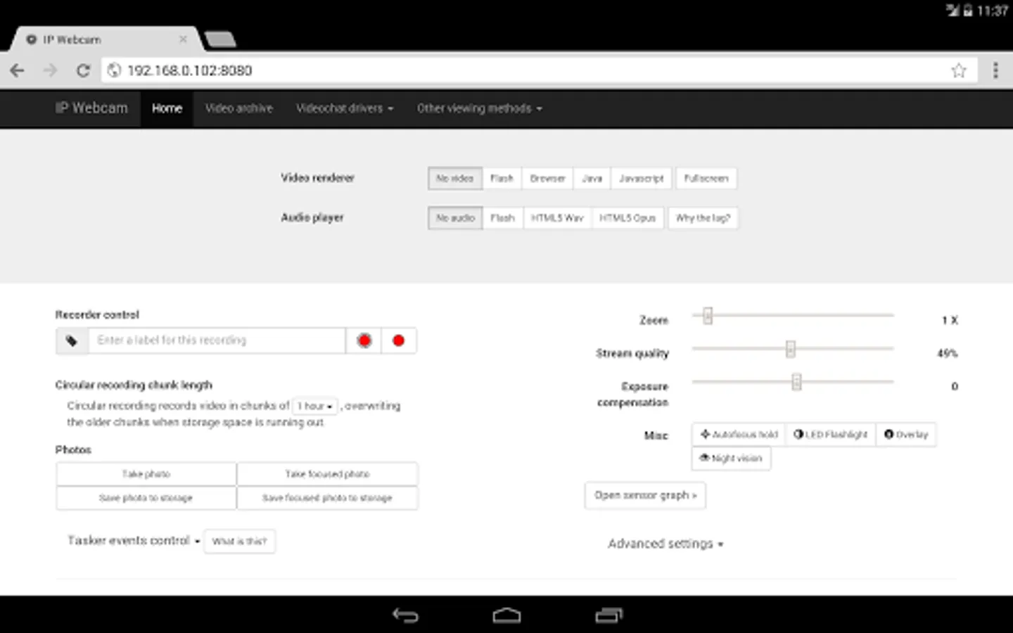 Use IP Webcam with third-party MJPG software, including video surveillance software, security monitors and most audio players.