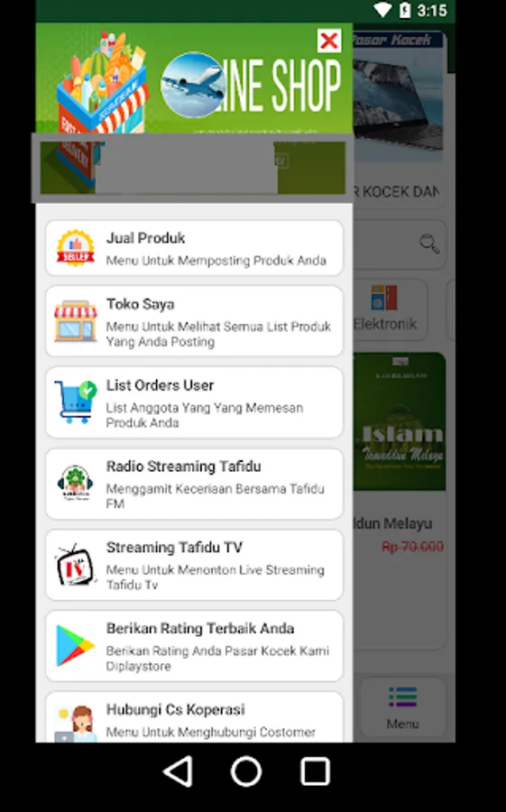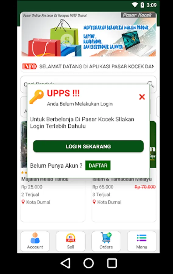 The pocket market application is an application developed by the Tafaqquh Fiddin Dumai Islamic Institute campus, especially for members of the Kocek cooperative who have registered in the cooperative.
