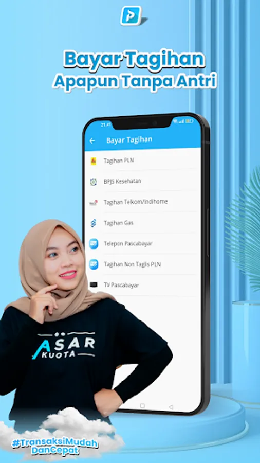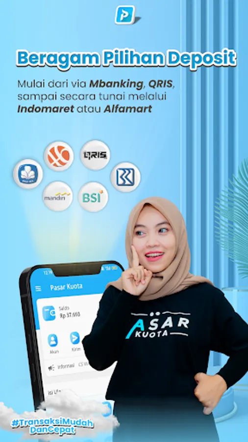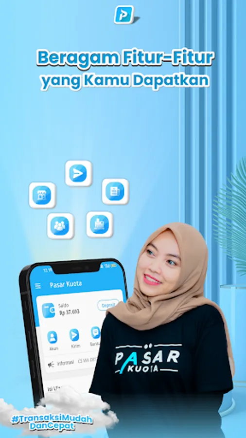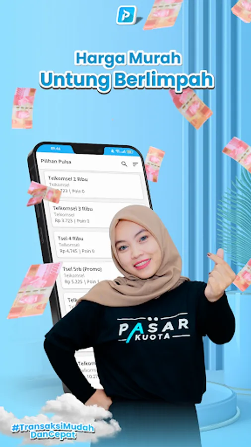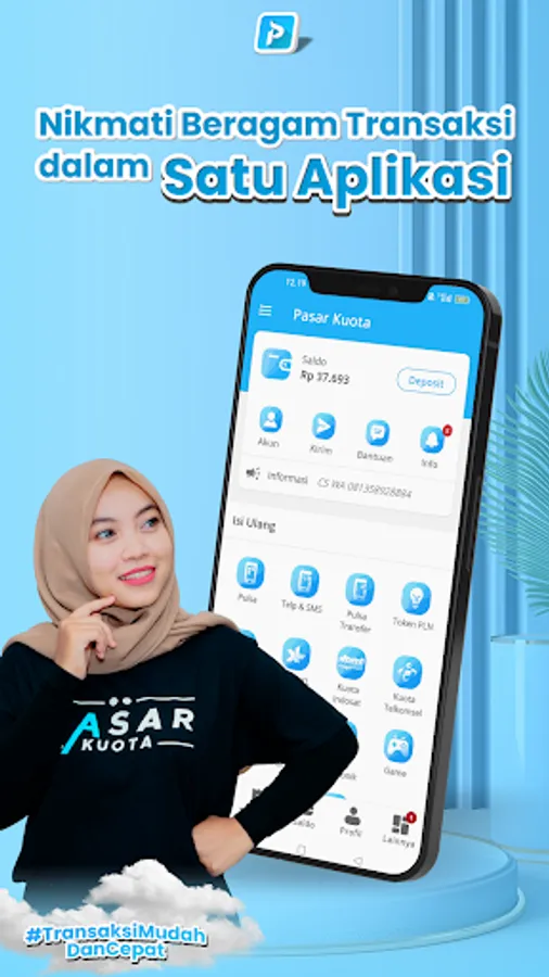 Pasar Kuota is an application for filling quotas, pulses, PLN tokens, Game Vouchers, E-Toll, E-Money, and can pay bills: PLN Electricity, BPJS, Telkom, Multi Finance, PGN, PDAM and various other bills
