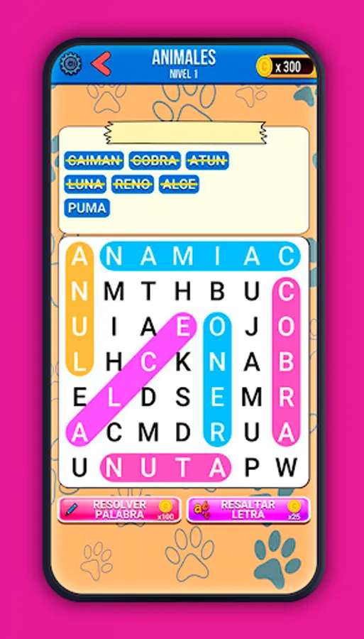 With a colorful and fun design, the wordsearch gives you an engaging visual experience.