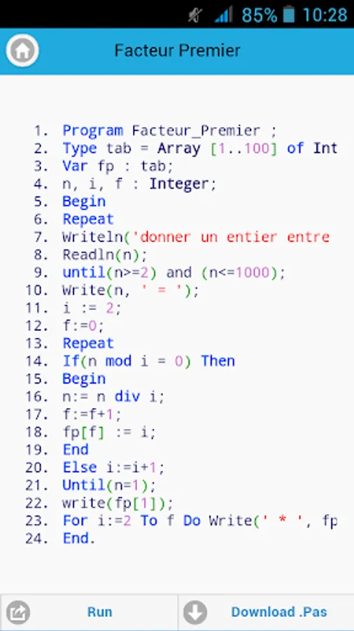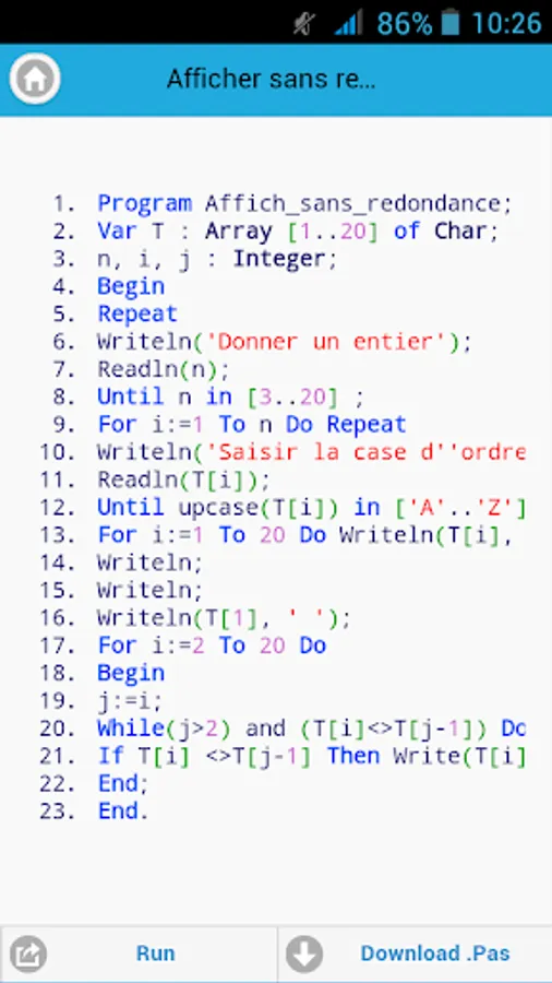 To ease the understanding and revision of the paschal turbo language, we have tried to assemble some codes of the functions and the procedures used in programming, for example: