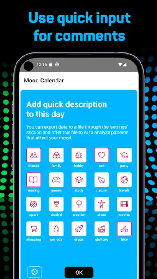 – Weekly and monthly mood charts