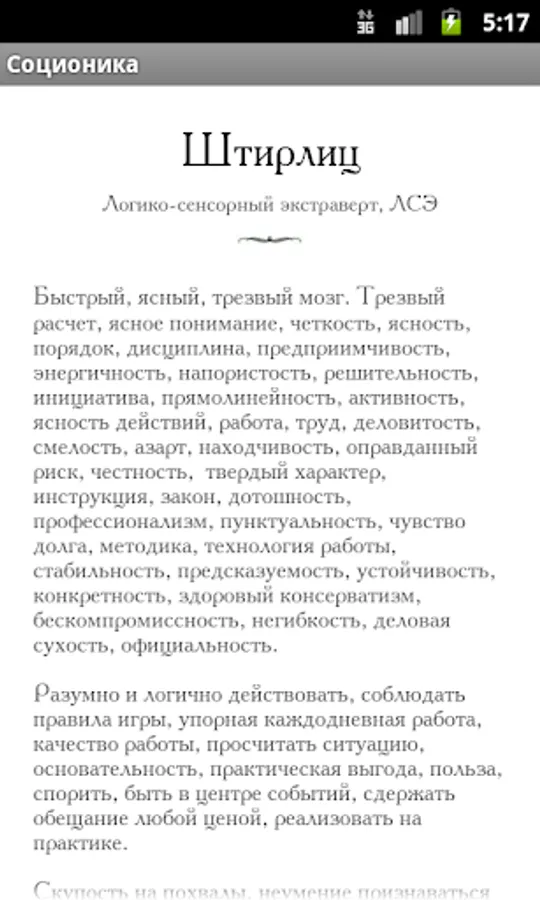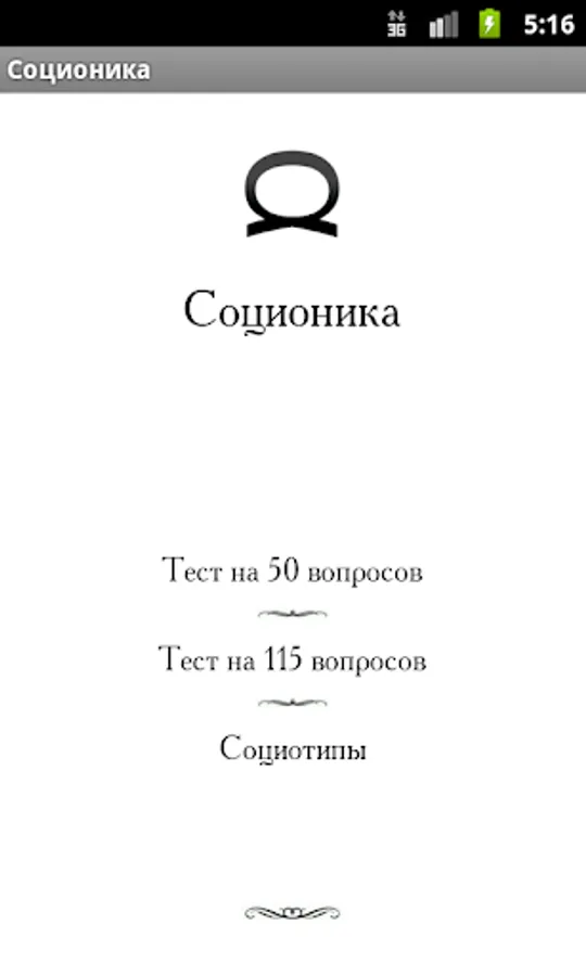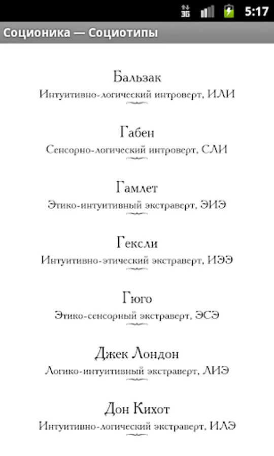 The test determines sotsiotip 50 and 115 questions. Plus sociotypes description.