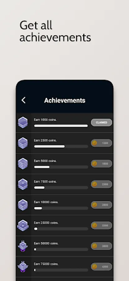 A list of achievements that you can unlock as you play. Unlock them all to get the ultimate and best achievement.