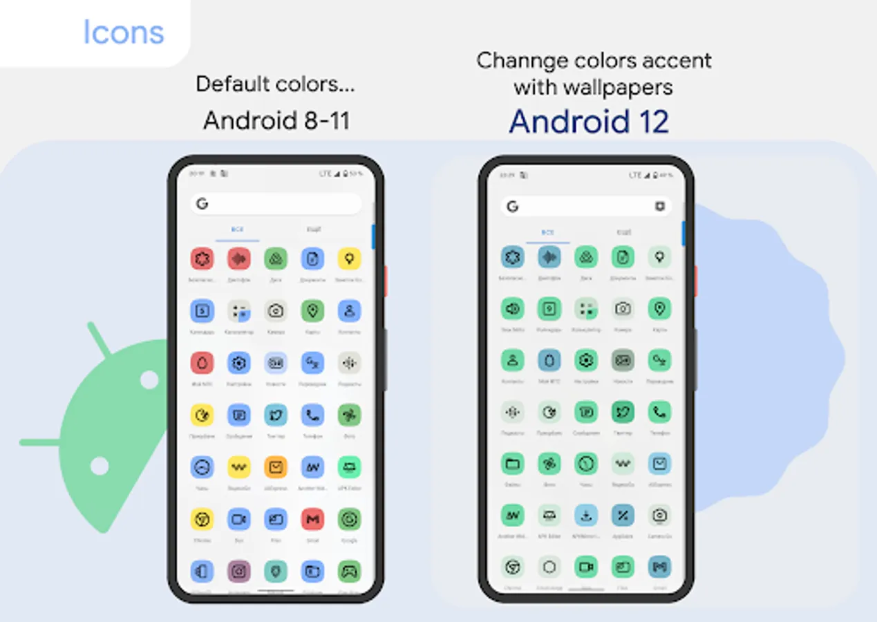 !Colors change ONLY Android 12! After changing wallpaper / accent system, you need to reapply icon pack (or apply another icon pack, and then immediately this one).