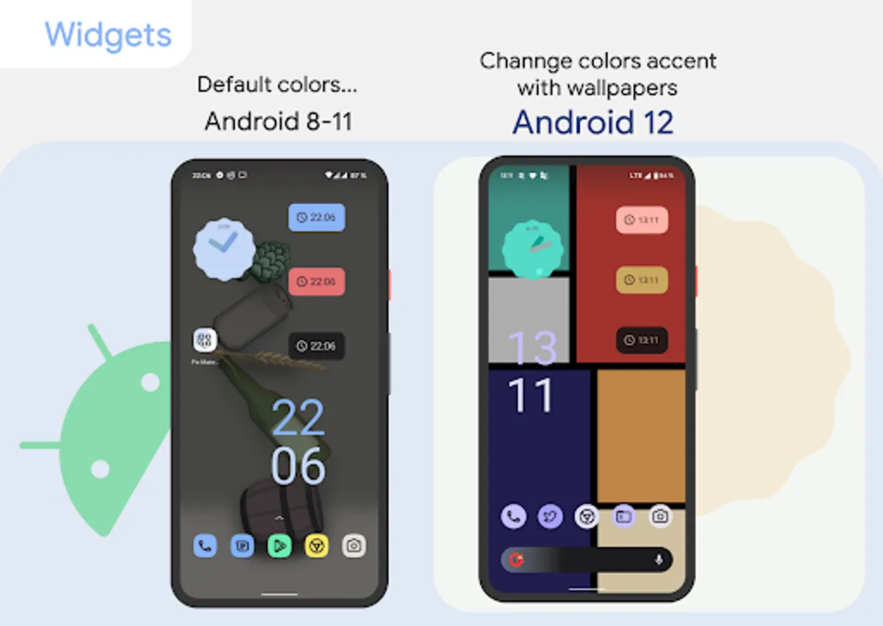 For Android 12+, colors of icons and widgets depends on wallpaper.