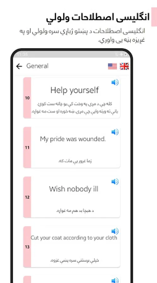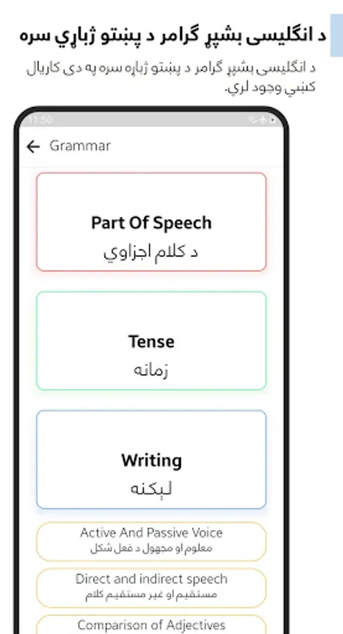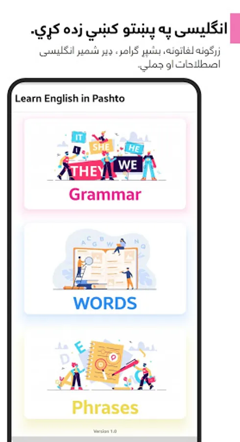 The First English learning app in pashto language with an incredible beautiful design and modern UI.
