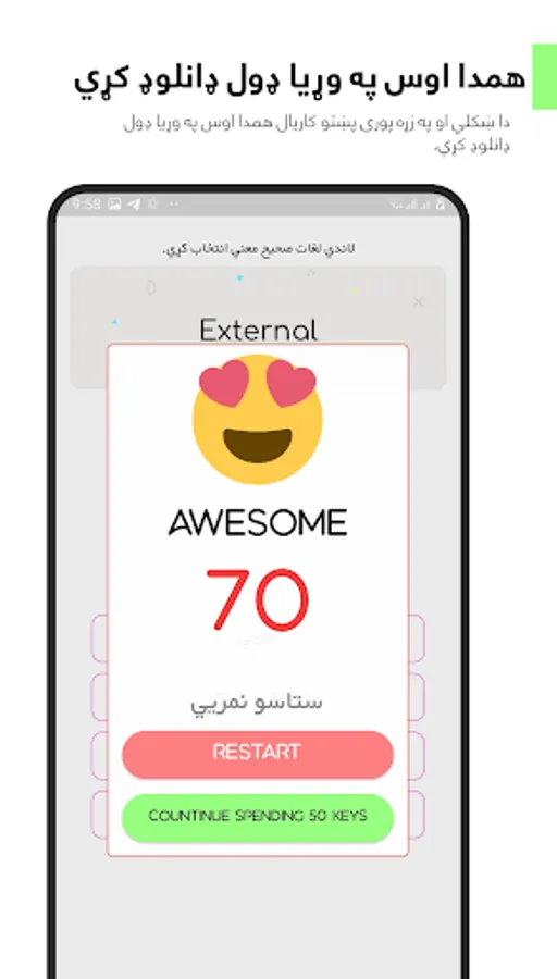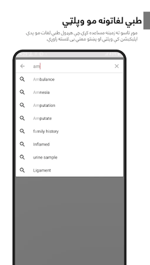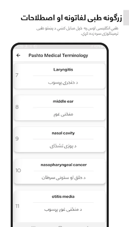 This app is not only a Pashto medical terminology but is also a game, where you can solve questions, improve your Medical English and make high scores to challenge your friends. its an Medical Pashto Dictionary where you can search your medical word and get pashto translation for that.