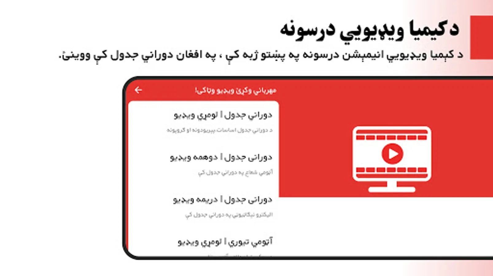 همدارنکه تاسو په افغان دوراني جدول کښي کولای سی د دوراني جدول مکمل ویډیو ګورس په پښتو ژبه هم ننداره کړي، نه یواځی چی دوراني جدول ویډیویی کورس کولای سی ننداره کړي بلکي آټومي تیوری مکمل ګورس او د کمیاوی اړیکی او موادو طبقه بندی اړوند ګورسونه هم ننداره کړي.