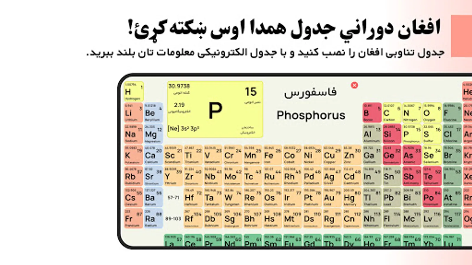 افغان دوراني جدول لومړني پښتو او دری الکترونیکي دوراني جدول دي، چی په ډیر ښایسته ډیزاین سره تاسو ته وړاندی کیږي.